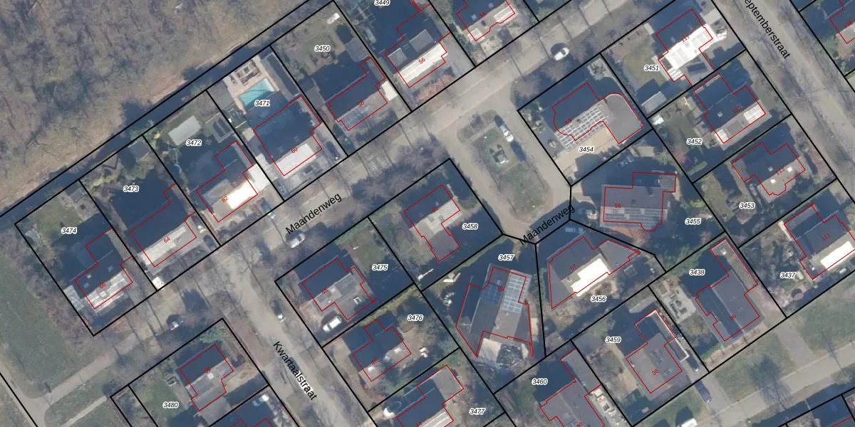 Maandenweg 61 is gelegen op kadastraal perceel AMR04B3458. Deze kadastrale aanduiding is uniek en wordt gebruikt door het Kadaster om eigendomsrechten en andere zakelijke rechten vast te leggen. Het perceel maakt onderdeel uit van de kadastrale gemeente Almere.