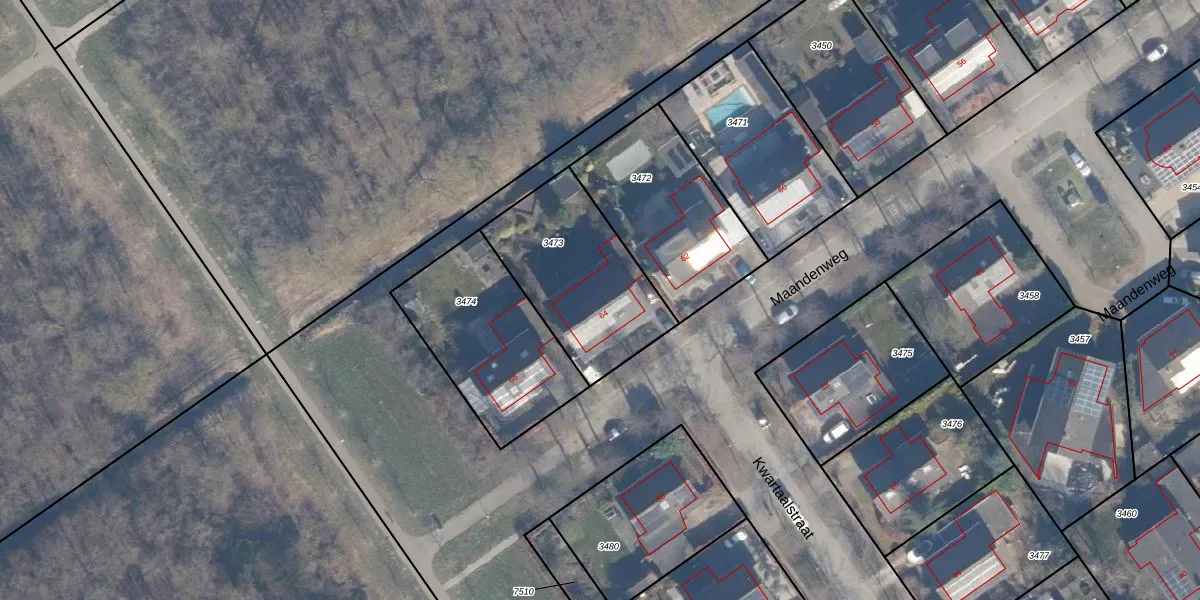 Maandenweg 64 is gelegen op kadastraal perceel AMR04B3473. Deze kadastrale aanduiding is uniek en wordt gebruikt door het Kadaster om eigendomsrechten en andere zakelijke rechten vast te leggen. Het perceel maakt onderdeel uit van de kadastrale gemeente Almere.
