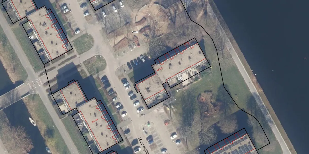 Het perceel waarop Maastrichtkwartier 103 staat heeft een oppervlakte van 972 m². Dit is een groot perceel. De perceeloppervlakte wordt geregistreerd door het Kadaster. Gedetailleerde informatie over de maten van dit perceel kunt u vinden in het rapport Kadastrale kaart met maatvoering van Maastrichtkwartier 103.