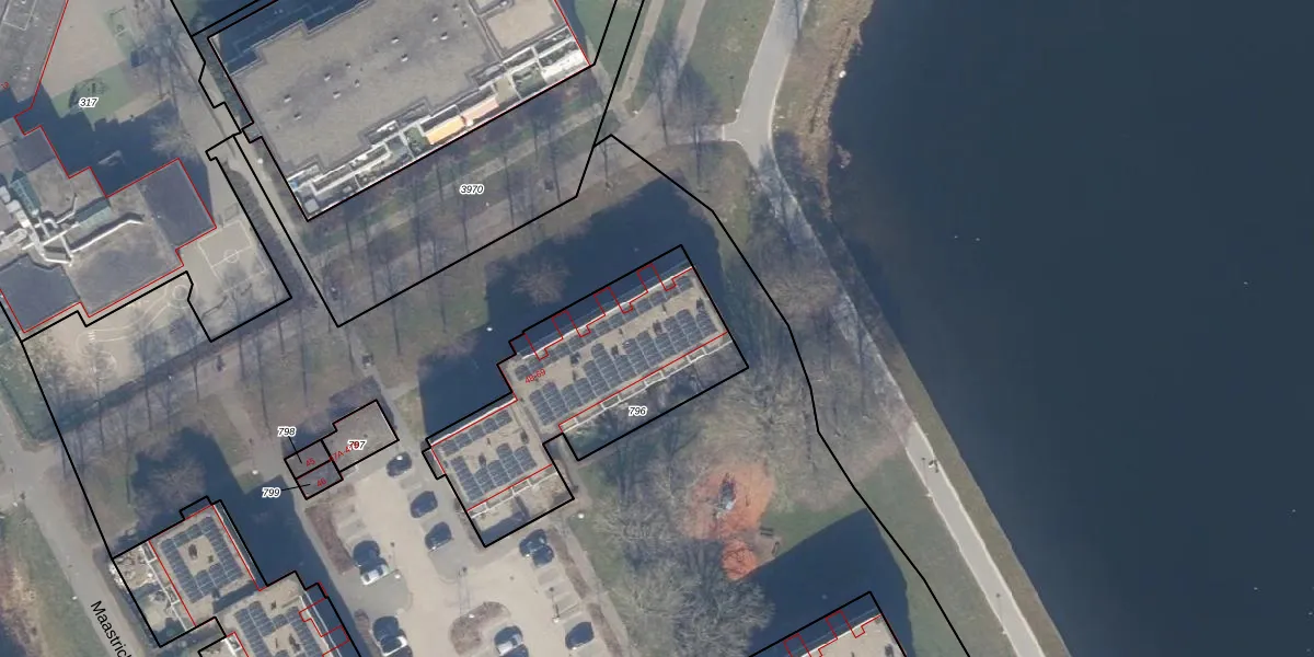Het perceel waarop Maastrichtkwartier 62 staat heeft een oppervlakte van 972 m². Dit is een groot perceel. De perceeloppervlakte wordt geregistreerd door het Kadaster. Gedetailleerde informatie over de maten van dit perceel kunt u vinden in het rapport Kadastrale kaart met maatvoering van Maastrichtkwartier 62.