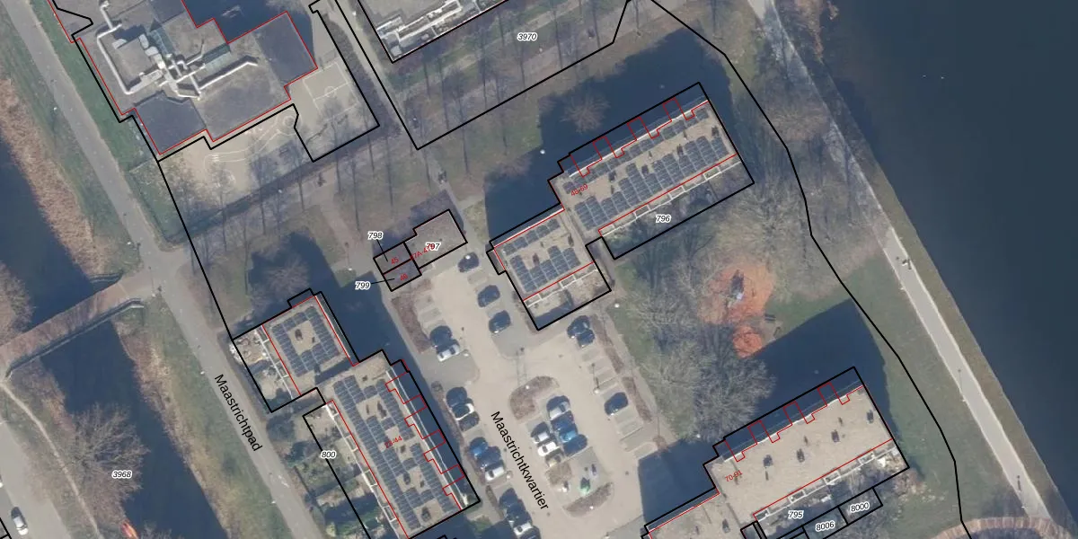 Het perceel waarop Maastrichtkwartier 64 staat heeft een oppervlakte van 972 m². Dit is een groot perceel. De perceeloppervlakte wordt geregistreerd door het Kadaster. Gedetailleerde informatie over de maten van dit perceel kunt u vinden in het rapport Kadastrale kaart met maatvoering van Maastrichtkwartier 64.
