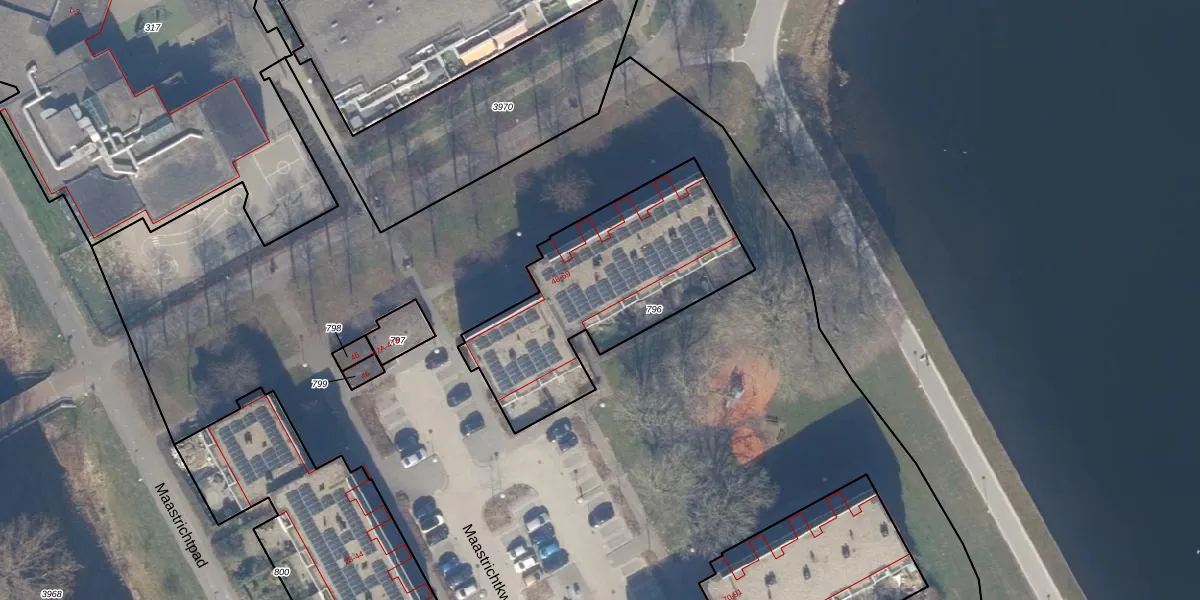Het perceel waarop Maastrichtkwartier 66 staat heeft een oppervlakte van 972 m². Dit is een groot perceel. De perceeloppervlakte wordt geregistreerd door het Kadaster. Gedetailleerde informatie over de maten van dit perceel kunt u vinden in het rapport Kadastrale kaart met maatvoering van Maastrichtkwartier 66.