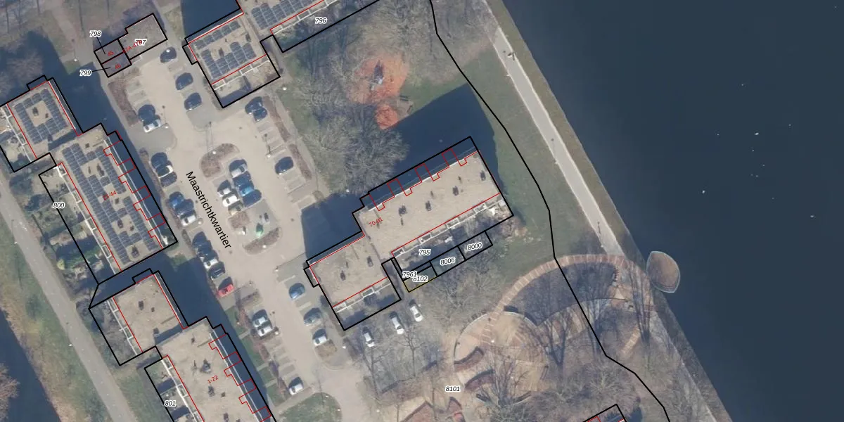 Het perceel waarop Maastrichtkwartier 71 staat heeft een oppervlakte van 971 m². Dit is een groot perceel. De perceeloppervlakte wordt geregistreerd door het Kadaster. Gedetailleerde informatie over de maten van dit perceel kunt u vinden in het rapport Kadastrale kaart met maatvoering van Maastrichtkwartier 71.