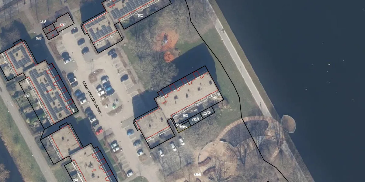 Het perceel waarop Maastrichtkwartier 77 staat heeft een oppervlakte van 971 m². Dit is een groot perceel. De perceeloppervlakte wordt geregistreerd door het Kadaster. Gedetailleerde informatie over de maten van dit perceel kunt u vinden in het rapport Kadastrale kaart met maatvoering van Maastrichtkwartier 77.