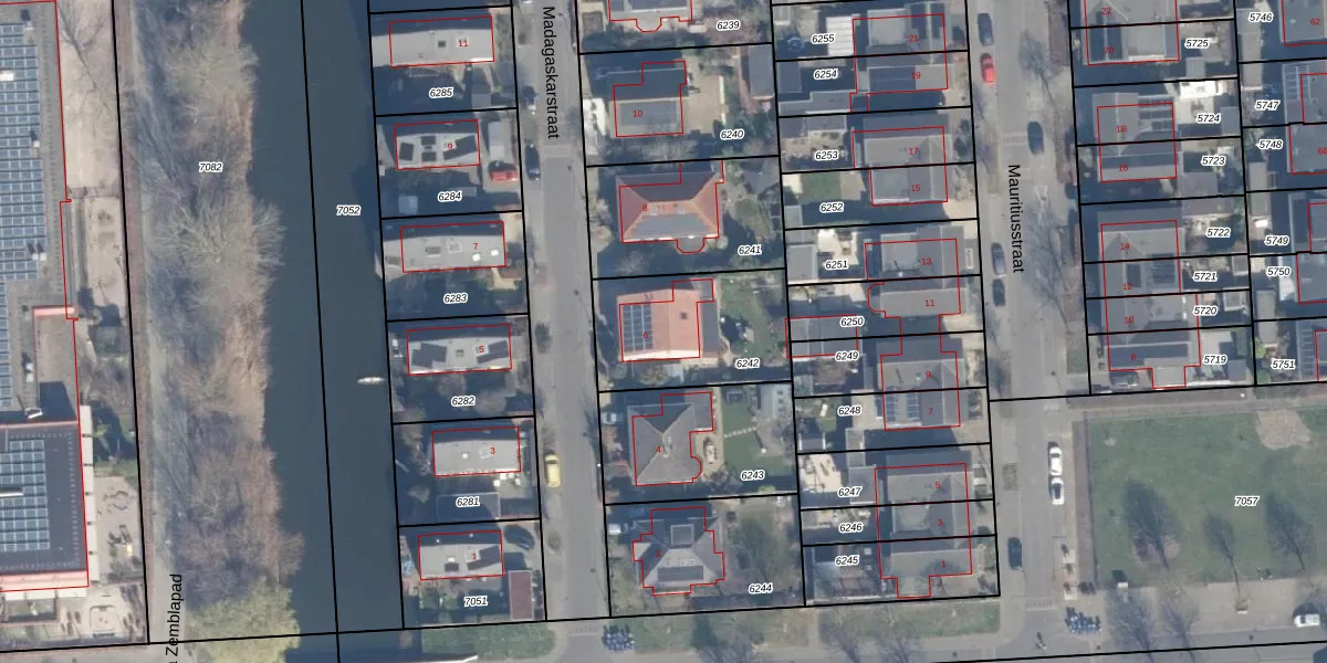 Het perceel waarop Madagaskarstraat 6 staat heeft een oppervlakte van 500 m². Dit is een groot perceel. De perceeloppervlakte wordt geregistreerd door het Kadaster. Gedetailleerde informatie over de maten van dit perceel kunt u vinden in het rapport Kadastrale kaart met maatvoering van Madagaskarstraat 6.