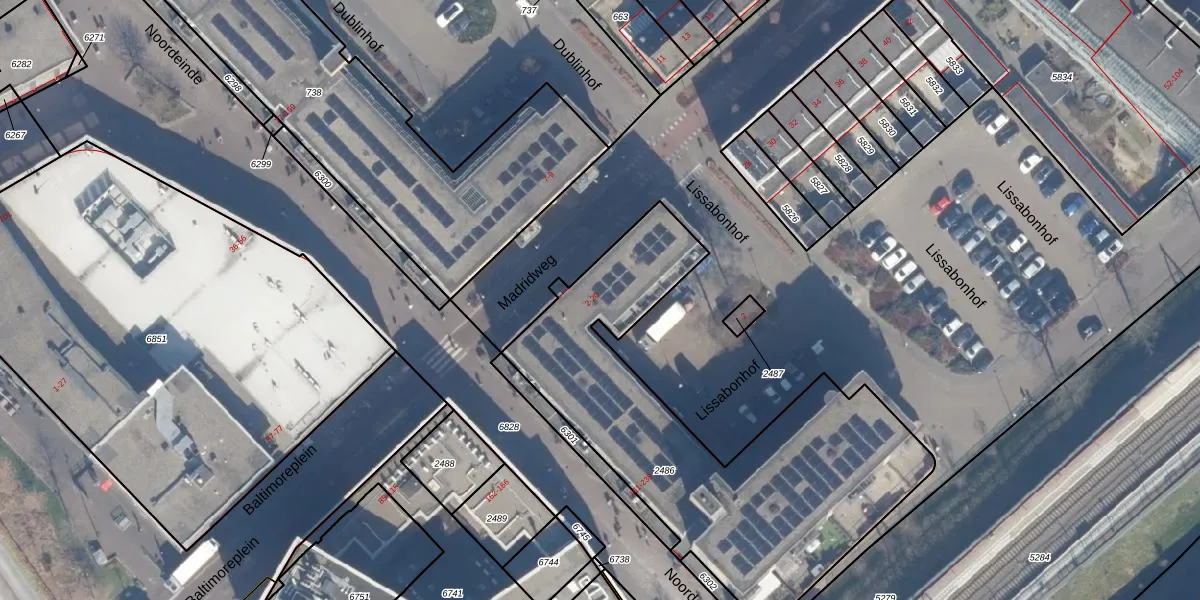 Madridweg 2 is gelegen op kadastraal perceel AMR04N2486. Deze kadastrale aanduiding is uniek en wordt gebruikt door het Kadaster om eigendomsrechten en andere zakelijke rechten vast te leggen. Het perceel maakt onderdeel uit van de kadastrale gemeente Almere.