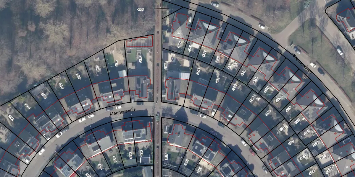 Het perceel waarop Magneetveld 13 staat heeft een oppervlakte van 452 m². Dit is een groot perceel. De perceeloppervlakte wordt geregistreerd door het Kadaster. Gedetailleerde informatie over de maten van dit perceel kunt u vinden in het rapport Kadastrale kaart met maatvoering van Magneetveld 13.