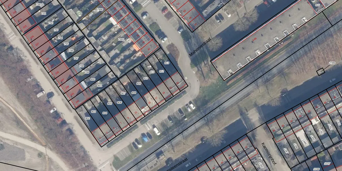 Mahoniestraat 21 is gelegen op kadastraal perceel AMR04B812. Deze kadastrale aanduiding is uniek en wordt gebruikt door het Kadaster om eigendomsrechten en andere zakelijke rechten vast te leggen. Het perceel maakt onderdeel uit van de kadastrale gemeente Almere.