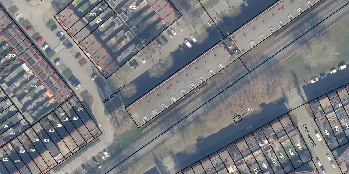 Het perceel waarop Mahoniestraat 38 staat heeft een oppervlakte van 1952 m². Dit is een zeer groot perceel. De perceeloppervlakte wordt geregistreerd door het Kadaster. Gedetailleerde informatie over de maten van dit perceel kunt u vinden in het rapport Kadastrale kaart met maatvoering van Mahoniestraat 38.