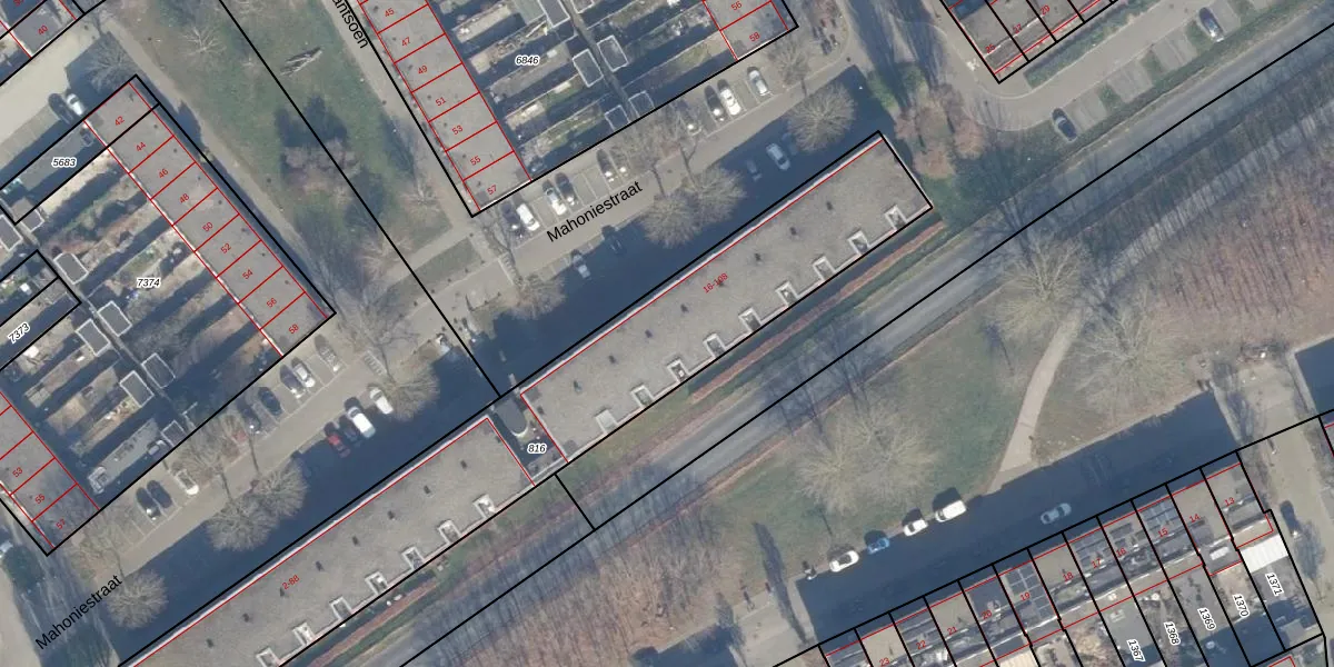 Het perceel waarop Mahoniestraat 56 staat heeft een oppervlakte van 1952 m². Dit is een zeer groot perceel. De perceeloppervlakte wordt geregistreerd door het Kadaster. Gedetailleerde informatie over de maten van dit perceel kunt u vinden in het rapport Kadastrale kaart met maatvoering van Mahoniestraat 56.
