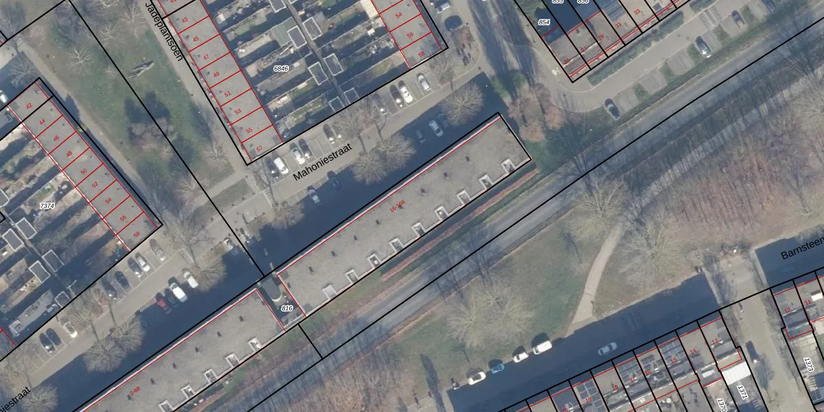 Het perceel waarop Mahoniestraat 60 staat heeft een oppervlakte van 1952 m². Dit is een zeer groot perceel. De perceeloppervlakte wordt geregistreerd door het Kadaster. Gedetailleerde informatie over de maten van dit perceel kunt u vinden in het rapport Kadastrale kaart met maatvoering van Mahoniestraat 60.