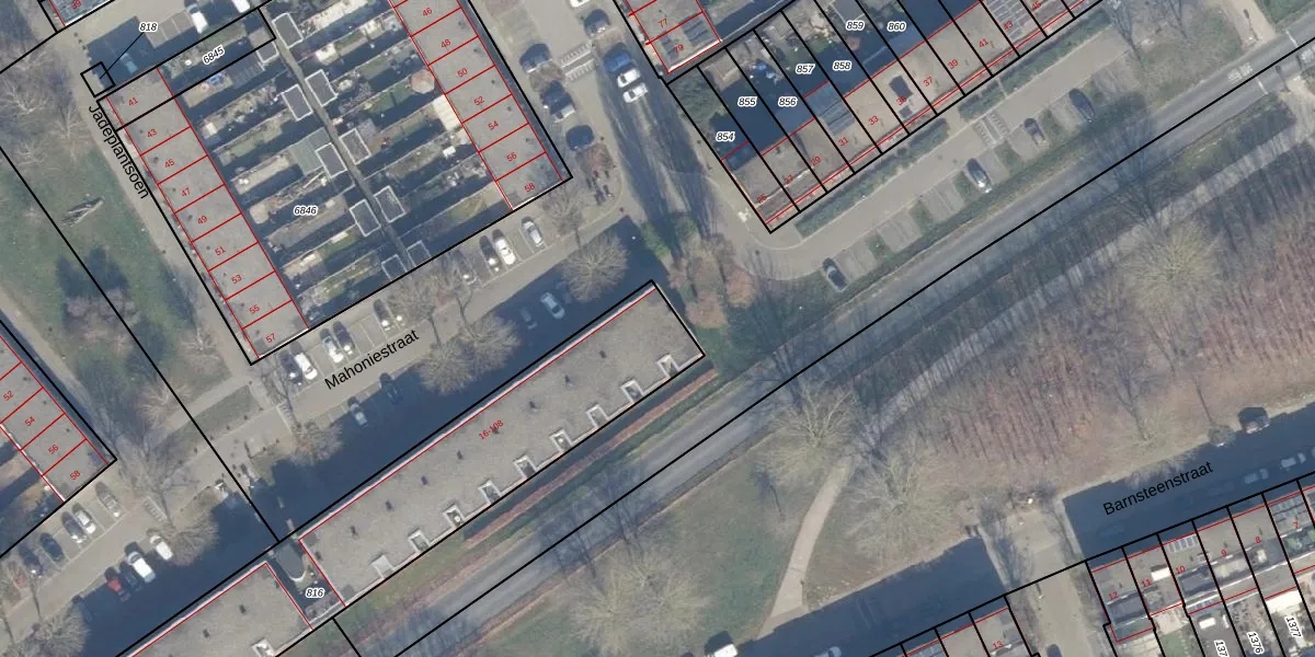 Het perceel waarop Mahoniestraat 68 staat heeft een oppervlakte van 1952 m². Dit is een zeer groot perceel. De perceeloppervlakte wordt geregistreerd door het Kadaster. Gedetailleerde informatie over de maten van dit perceel kunt u vinden in het rapport Kadastrale kaart met maatvoering van Mahoniestraat 68.