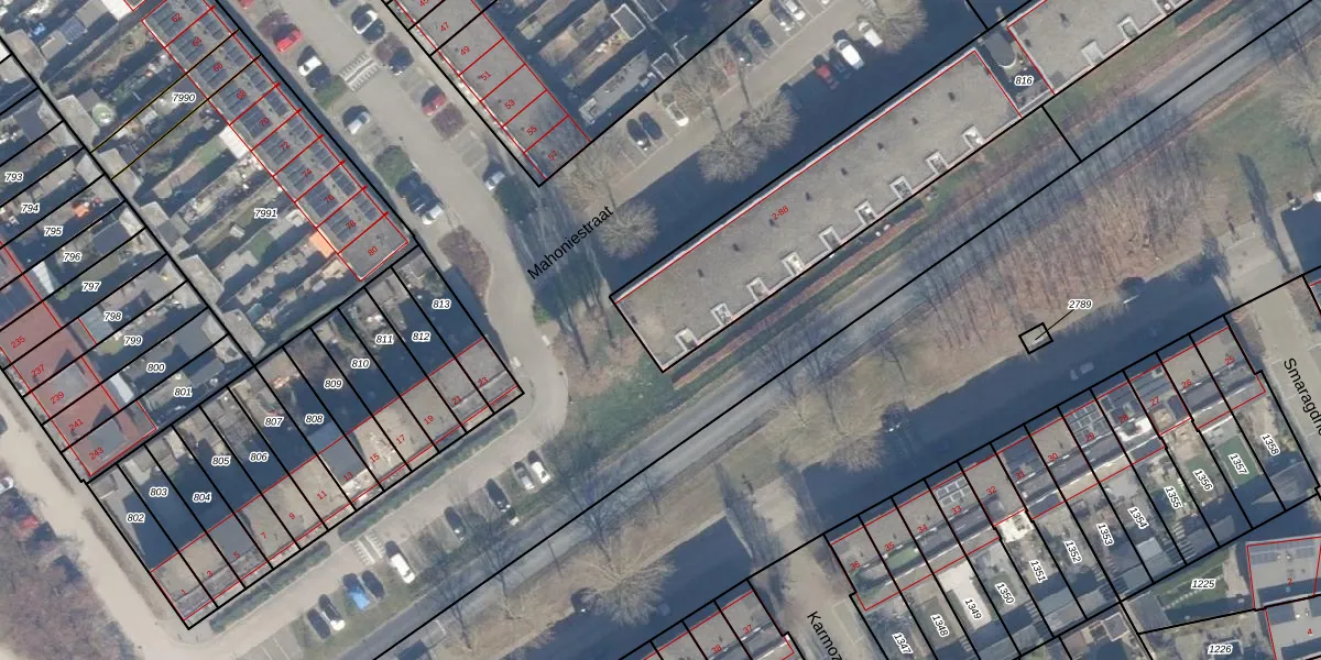 Het perceel waarop Mahoniestraat 70 staat heeft een oppervlakte van 1952 m². Dit is een zeer groot perceel. De perceeloppervlakte wordt geregistreerd door het Kadaster. Gedetailleerde informatie over de maten van dit perceel kunt u vinden in het rapport Kadastrale kaart met maatvoering van Mahoniestraat 70.