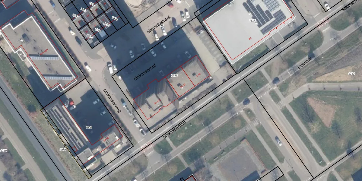 Makassarhof 18 is gelegen op kadastraal perceel AMR04B7786. Deze kadastrale aanduiding is uniek en wordt gebruikt door het Kadaster om eigendomsrechten en andere zakelijke rechten vast te leggen. Het perceel maakt onderdeel uit van de kadastrale gemeente Almere.