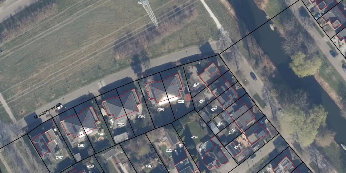 Mandarijnstraat 13 is gelegen op kadastraal perceel AMR04U5623. Deze kadastrale aanduiding is uniek en wordt gebruikt door het Kadaster om eigendomsrechten en andere zakelijke rechten vast te leggen. Het perceel maakt onderdeel uit van de kadastrale gemeente Almere.