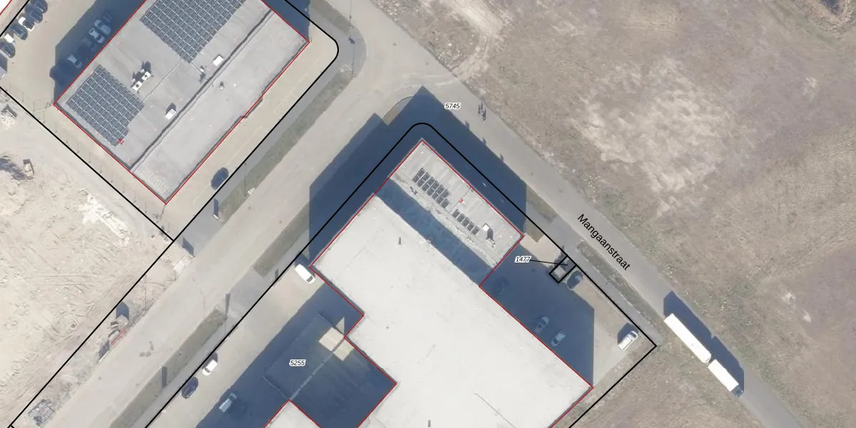 Het perceel waarop Mangaanstraat 3 staat heeft een oppervlakte van 8377 m². Dit is een zeer groot perceel. De perceeloppervlakte wordt geregistreerd door het Kadaster. Gedetailleerde informatie over de maten van dit perceel kunt u vinden in het rapport Kadastrale kaart met maatvoering van Mangaanstraat 3.