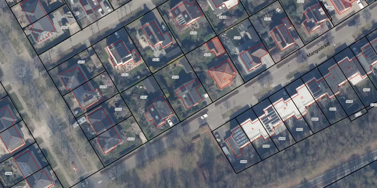 Het perceel waarop Mangostraat 11 staat heeft een oppervlakte van 591 m². Dit is een groot perceel. De perceeloppervlakte wordt geregistreerd door het Kadaster. Gedetailleerde informatie over de maten van dit perceel kunt u vinden in het rapport Kadastrale kaart met maatvoering van Mangostraat 11.