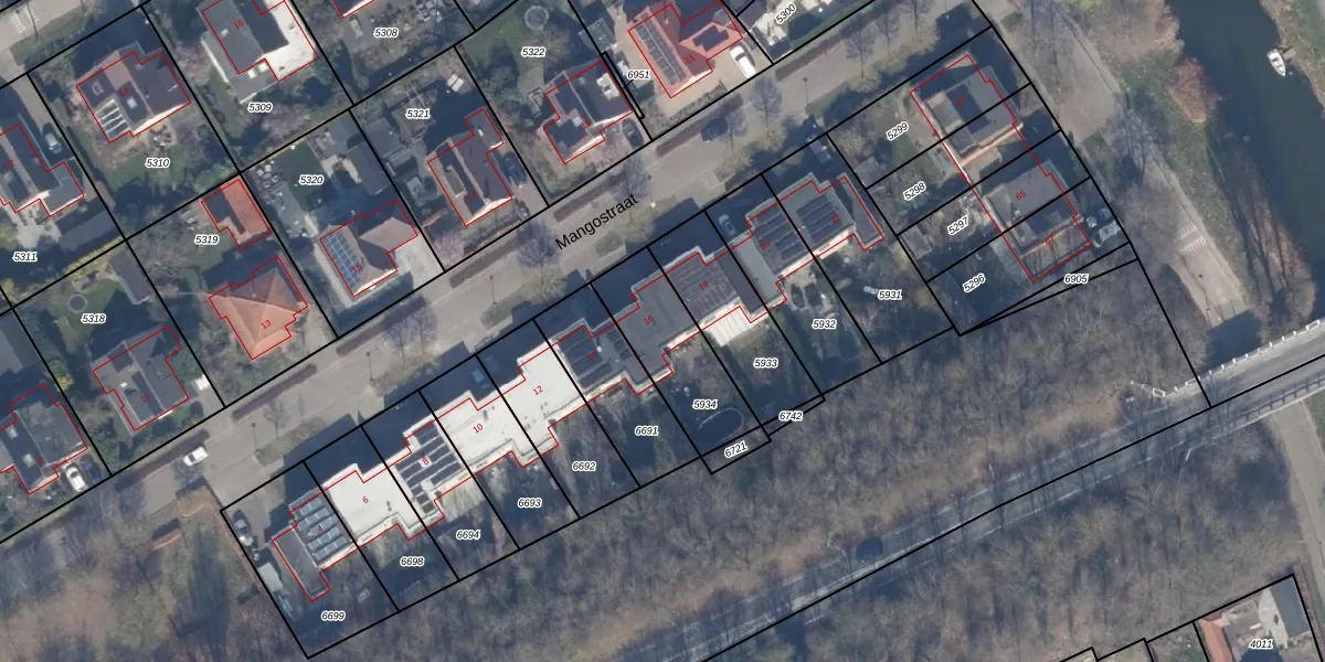 Het perceel waarop Mangostraat 16 staat heeft een oppervlakte van 323 m². Dit is een groot perceel. De perceeloppervlakte wordt geregistreerd door het Kadaster. Gedetailleerde informatie over de maten van dit perceel kunt u vinden in het rapport Kadastrale kaart met maatvoering van Mangostraat 16.
