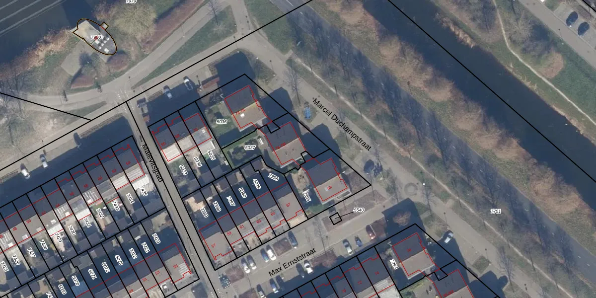 Het perceel waarop Marcel Duchampstraat 78-d staat heeft een oppervlakte van 377 m². Dit is een groot perceel. De perceeloppervlakte wordt geregistreerd door het Kadaster. Gedetailleerde informatie over de maten van dit perceel kunt u vinden in het rapport Kadastrale kaart met maatvoering van Marcel Duchampstraat 78-d.