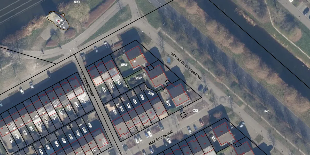 Het perceel waarop Marcel Duchampstraat 78-f staat heeft een oppervlakte van 377 m². Dit is een groot perceel. De perceeloppervlakte wordt geregistreerd door het Kadaster. Gedetailleerde informatie over de maten van dit perceel kunt u vinden in het rapport Kadastrale kaart met maatvoering van Marcel Duchampstraat 78-f.