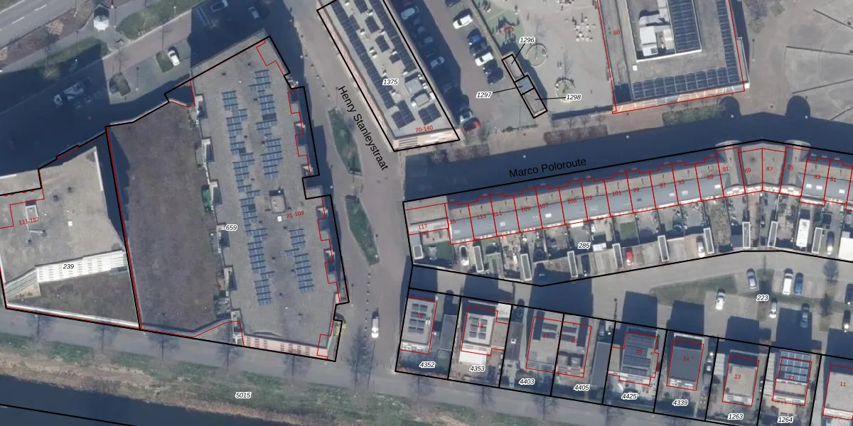 Het perceel waarop Marco Poloroute 117 staat heeft een oppervlakte van 3115 m². Dit is een zeer groot perceel. De perceeloppervlakte wordt geregistreerd door het Kadaster. Gedetailleerde informatie over de maten van dit perceel kunt u vinden in het rapport Kadastrale kaart met maatvoering van Marco Poloroute 117.