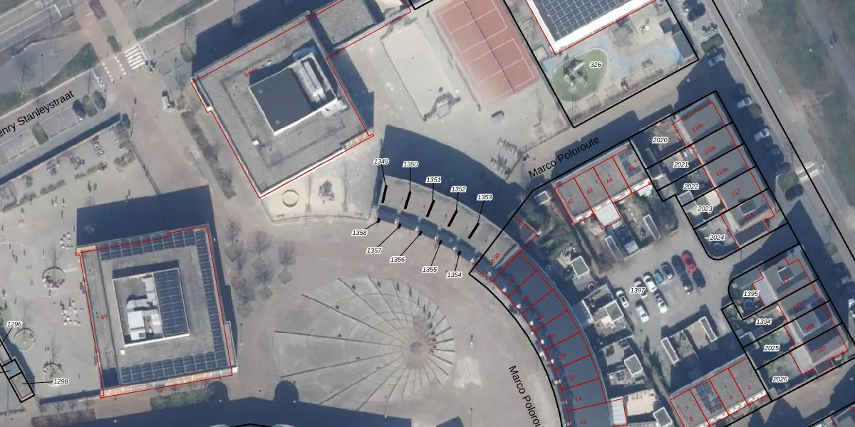 Marco Poloroute 36 is gelegen op kadastraal perceel AMR04W5015. Deze kadastrale aanduiding is uniek en wordt gebruikt door het Kadaster om eigendomsrechten en andere zakelijke rechten vast te leggen. Het perceel maakt onderdeel uit van de kadastrale gemeente Almere.