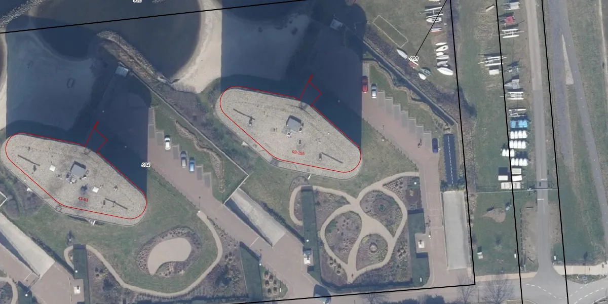 Het perceel waarop Marinaweg 101 staat heeft een oppervlakte van 2,3 ha. Dit is een zeer groot perceel. De perceeloppervlakte wordt geregistreerd door het Kadaster. Gedetailleerde informatie over de maten van dit perceel kunt u vinden in het rapport Kadastrale kaart met maatvoering van Marinaweg 101.