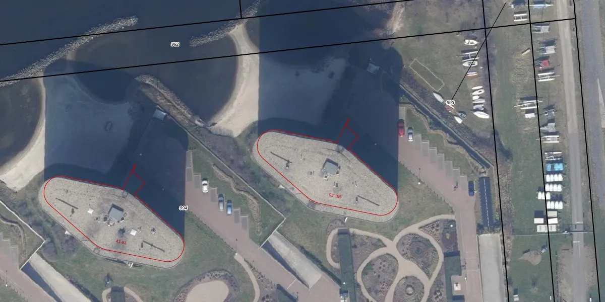 Het perceel waarop Marinaweg 121 staat heeft een oppervlakte van 2,3 ha. Dit is een zeer groot perceel. De perceeloppervlakte wordt geregistreerd door het Kadaster. Gedetailleerde informatie over de maten van dit perceel kunt u vinden in het rapport Kadastrale kaart met maatvoering van Marinaweg 121.