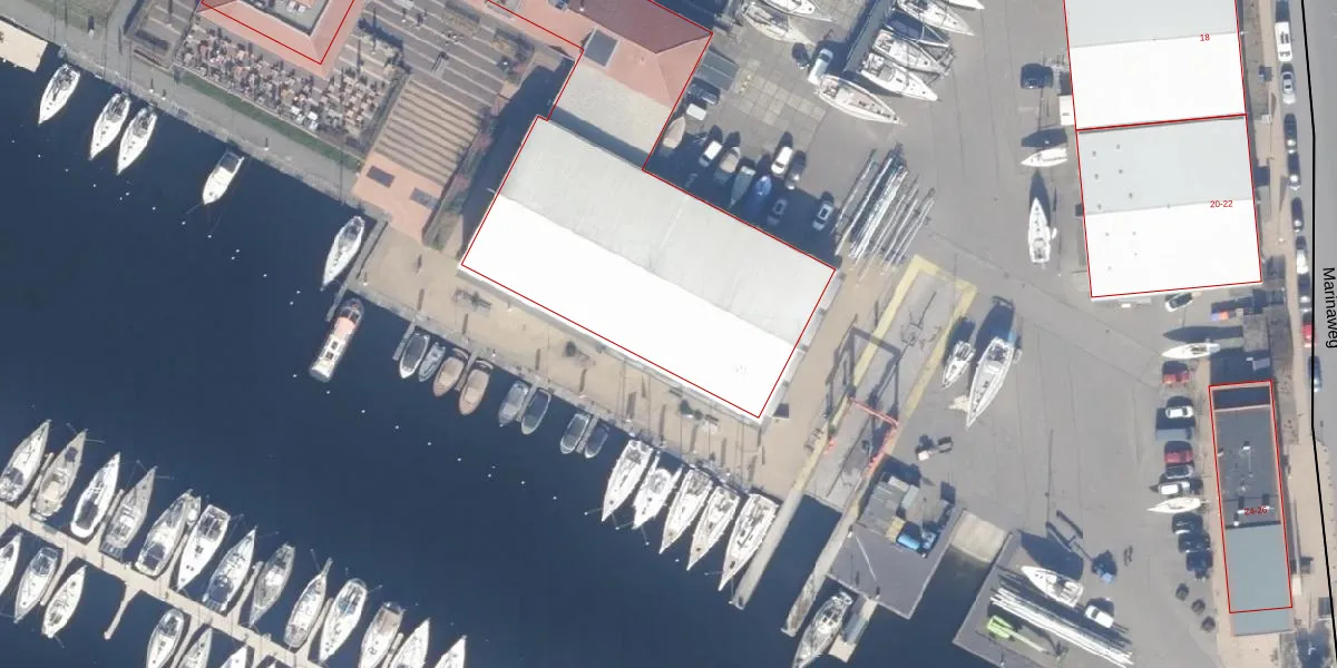 Het perceel waarop Marinaweg 14-B staat heeft een oppervlakte van 16,1 ha. Dit is een zeer groot perceel. De perceeloppervlakte wordt geregistreerd door het Kadaster. Gedetailleerde informatie over de maten van dit perceel kunt u vinden in het rapport Kadastrale kaart met maatvoering van Marinaweg 14-B.