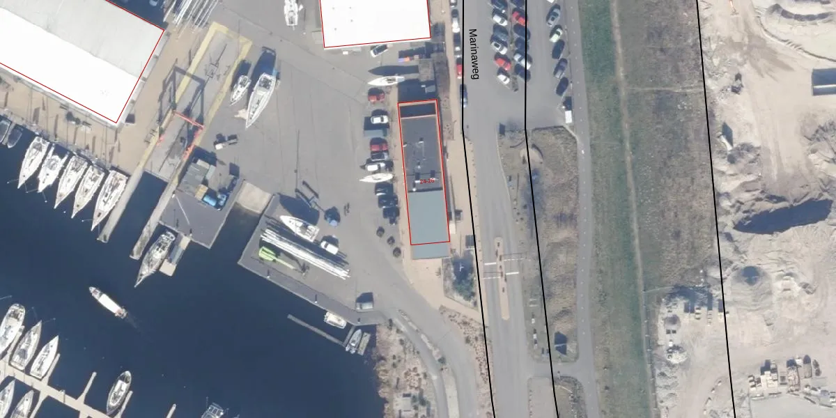 Het perceel waarop Marinaweg 26 staat heeft een oppervlakte van 16,1 ha. Dit is een zeer groot perceel. De perceeloppervlakte wordt geregistreerd door het Kadaster. Gedetailleerde informatie over de maten van dit perceel kunt u vinden in het rapport Kadastrale kaart met maatvoering van Marinaweg 26.