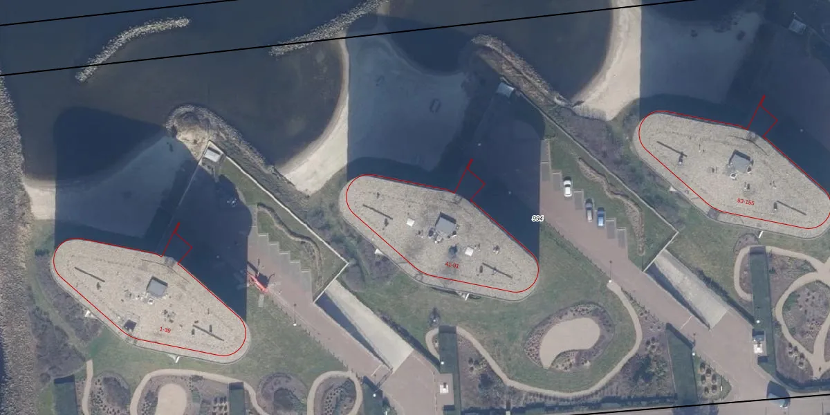 Het perceel waarop Marinaweg 63 staat heeft een oppervlakte van 2,3 ha. Dit is een zeer groot perceel. De perceeloppervlakte wordt geregistreerd door het Kadaster. Gedetailleerde informatie over de maten van dit perceel kunt u vinden in het rapport Kadastrale kaart met maatvoering van Marinaweg 63.
