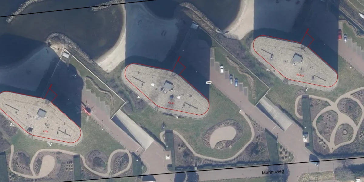 Het perceel waarop Marinaweg 77 staat heeft een oppervlakte van 2,3 ha. Dit is een zeer groot perceel. De perceeloppervlakte wordt geregistreerd door het Kadaster. Gedetailleerde informatie over de maten van dit perceel kunt u vinden in het rapport Kadastrale kaart met maatvoering van Marinaweg 77.
