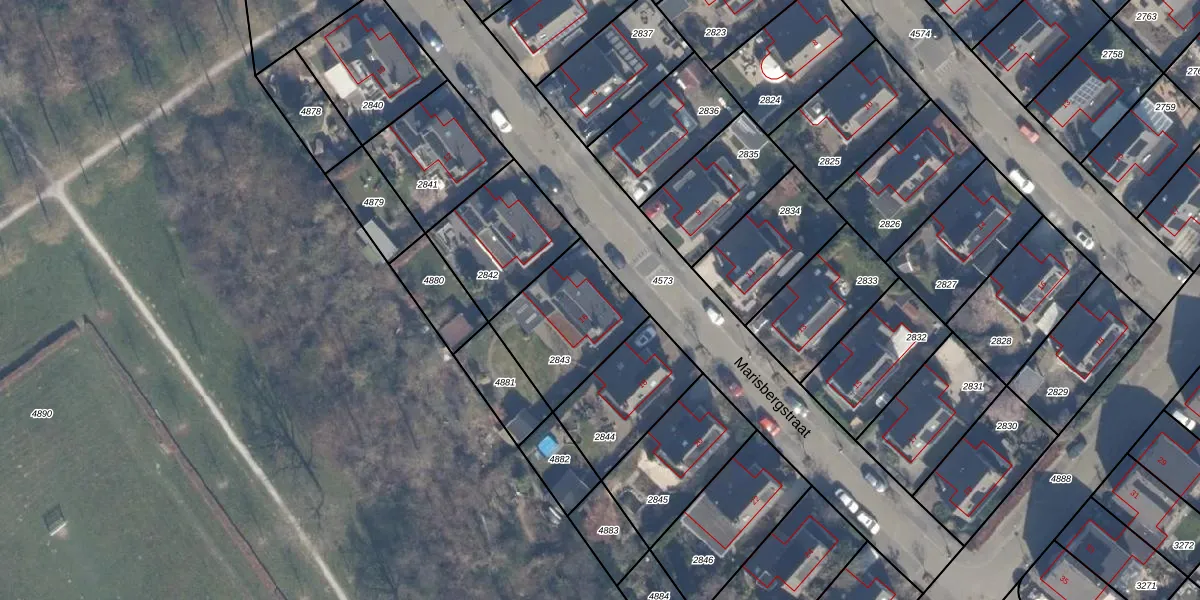 Het perceel waarop Marisbergstraat 16 staat heeft een oppervlakte van 389 m². Dit is een groot perceel. De perceeloppervlakte wordt geregistreerd door het Kadaster. Gedetailleerde informatie over de maten van dit perceel kunt u vinden in het rapport Kadastrale kaart met maatvoering van Marisbergstraat 16.