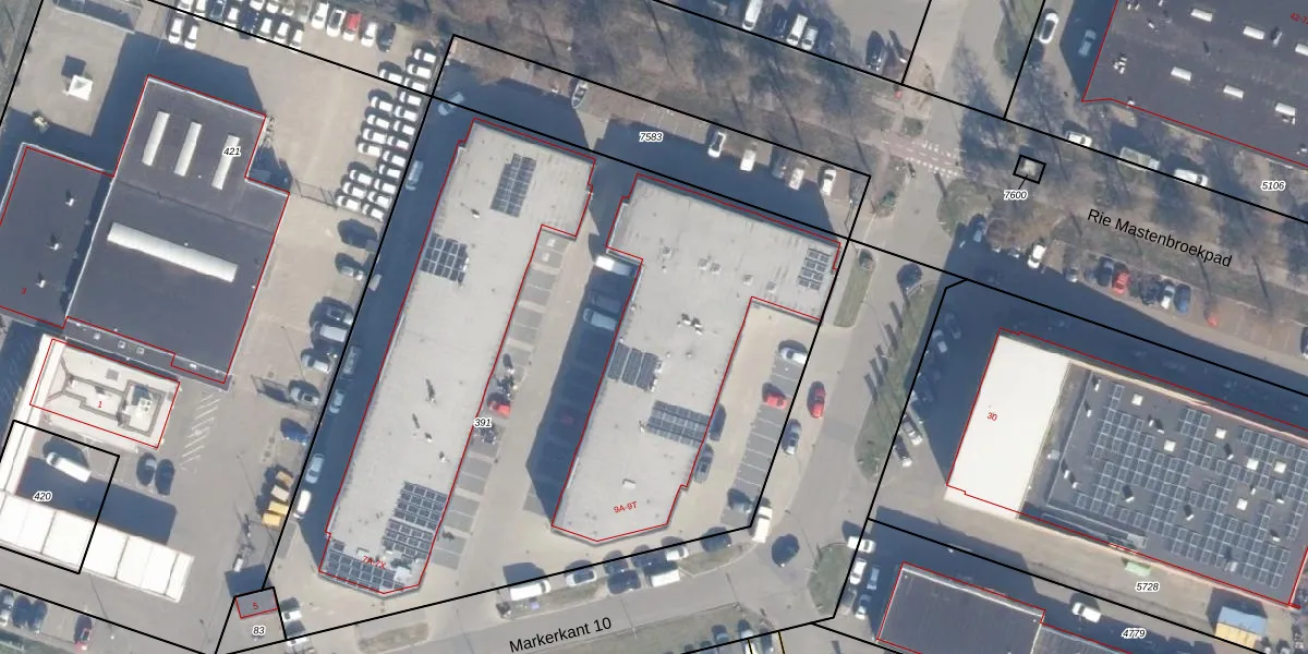 Markerkant 10 9-F is gelegen op kadastraal perceel AMR04O391. Deze kadastrale aanduiding is uniek en wordt gebruikt door het Kadaster om eigendomsrechten en andere zakelijke rechten vast te leggen. Het perceel maakt onderdeel uit van de kadastrale gemeente Almere.