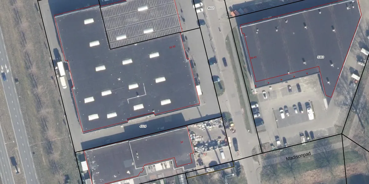 Het perceel waarop het adres ligt is AMR04-O-4324. De afkorting 'AMR04' staat voor kadastrale gemeente Almere. De gemiddelde perceeloppervlakte in de kadastrale gemeente Almere is 3327,75 m². Dit perceel is met zijn 5211 m² dus groter dan gemiddeld. Het kleinste perceel in de kadastrale gemeente is 0 m² groot. De grootste perceeloppervlakte is 32,12 km². Op het perceel liggen in totaal 8 adressen. De huidige grenzen van het perceel zijn digitaal in de Basisregistratie Kadaster (BRK) geregistreerd op 20-08-1997.