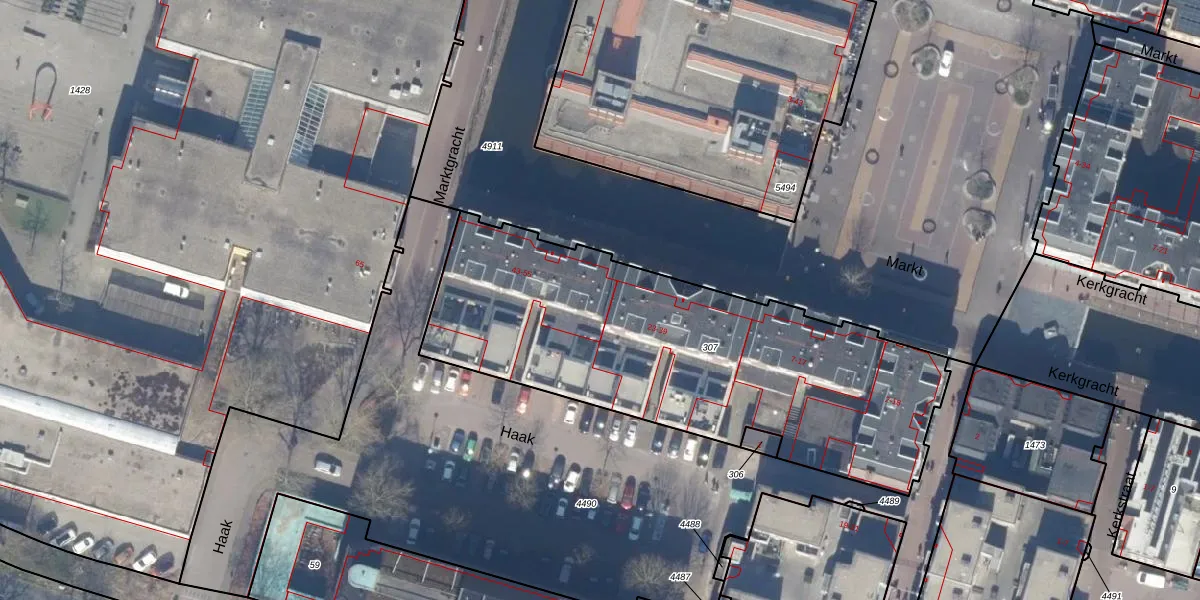 Het perceel waarop Marktgracht 43-A staat heeft een oppervlakte van 2060 m². Dit is een zeer groot perceel. De perceeloppervlakte wordt geregistreerd door het Kadaster. Gedetailleerde informatie over de maten van dit perceel kunt u vinden in het rapport Kadastrale kaart met maatvoering van Marktgracht 43-A.