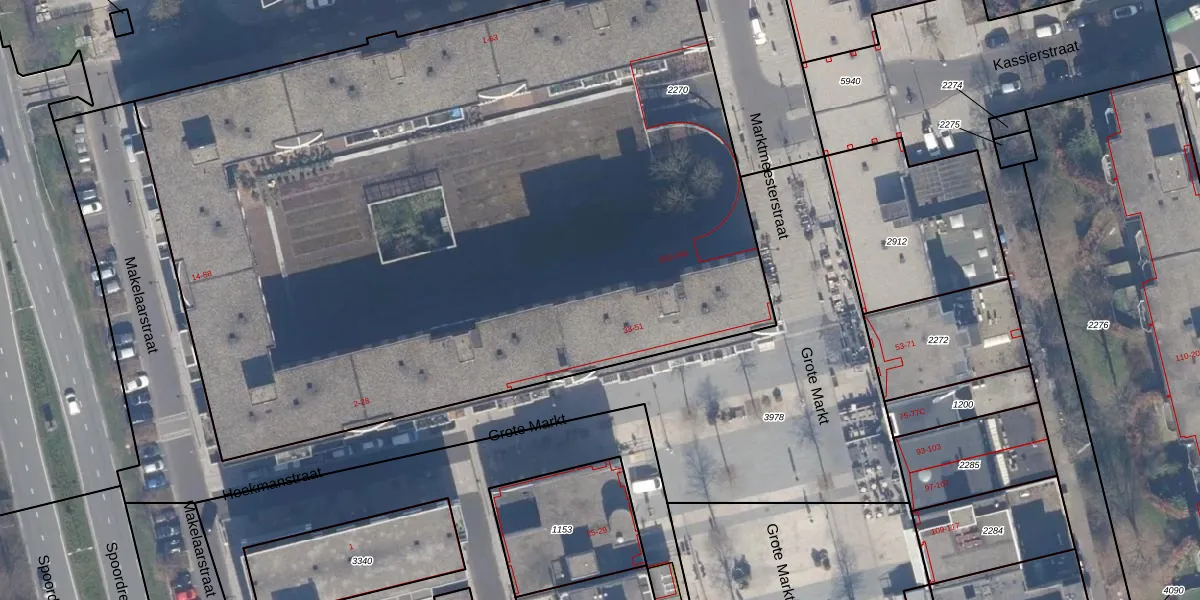 Het perceel waarop Marktmeesterstraat 104 staat heeft een oppervlakte van 5880 m². Dit is een zeer groot perceel. De perceeloppervlakte wordt geregistreerd door het Kadaster. Gedetailleerde informatie over de maten van dit perceel kunt u vinden in het rapport Kadastrale kaart met maatvoering van Marktmeesterstraat 104.