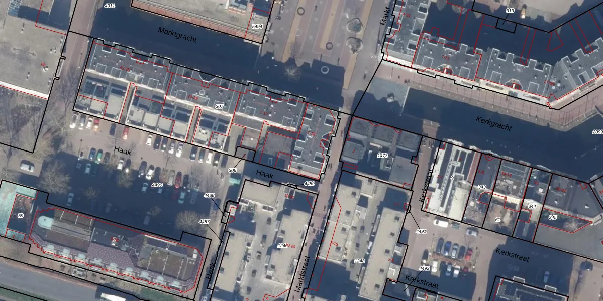 Het perceel waarop Marktstraat 12 staat heeft een oppervlakte van 2060 m². Dit is een zeer groot perceel. De perceeloppervlakte wordt geregistreerd door het Kadaster. Gedetailleerde informatie over de maten van dit perceel kunt u vinden in het rapport Kadastrale kaart met maatvoering van Marktstraat 12.