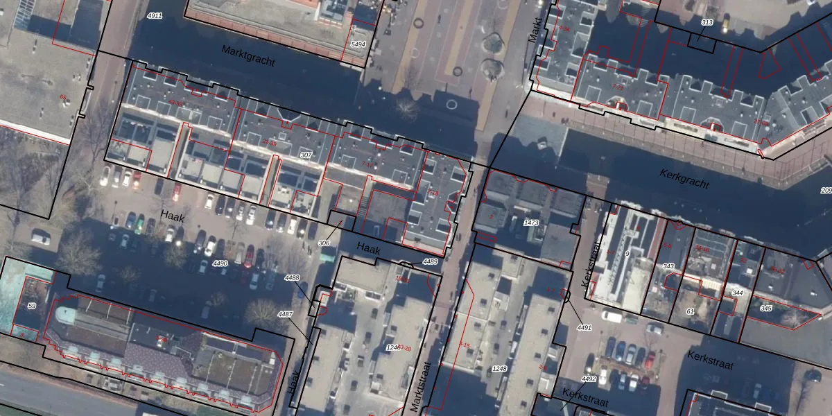 Het perceel waarop Marktstraat 16 staat heeft een oppervlakte van 2060 m². Dit is een zeer groot perceel. De perceeloppervlakte wordt geregistreerd door het Kadaster. Gedetailleerde informatie over de maten van dit perceel kunt u vinden in het rapport Kadastrale kaart met maatvoering van Marktstraat 16.
