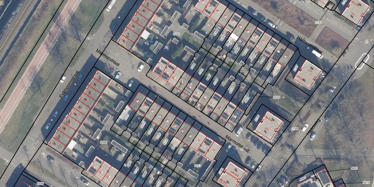 Marmotstraat 18 is gelegen op kadastraal perceel AMR04N5701. Deze kadastrale aanduiding is uniek en wordt gebruikt door het Kadaster om eigendomsrechten en andere zakelijke rechten vast te leggen. Het perceel maakt onderdeel uit van de kadastrale gemeente Almere.