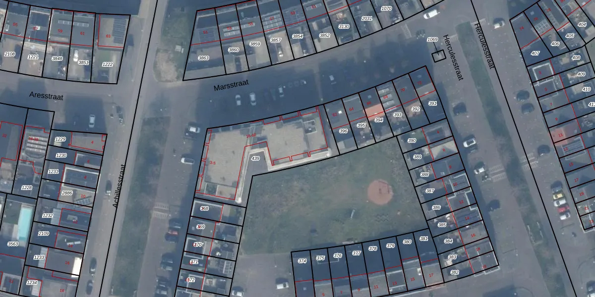 Het perceel waarop Marsstraat 20 staat heeft een oppervlakte van 944 m². Dit is een groot perceel. De perceeloppervlakte wordt geregistreerd door het Kadaster. Gedetailleerde informatie over de maten van dit perceel kunt u vinden in het rapport Kadastrale kaart met maatvoering van Marsstraat 20.