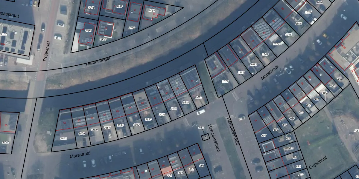 Het perceel waarop Marsstraat 69 staat heeft een oppervlakte van 169 m². Dit is een middelgroot perceel. De perceeloppervlakte wordt geregistreerd door het Kadaster. Gedetailleerde informatie over de maten van dit perceel kunt u vinden in het rapport Kadastrale kaart met maatvoering van Marsstraat 69.