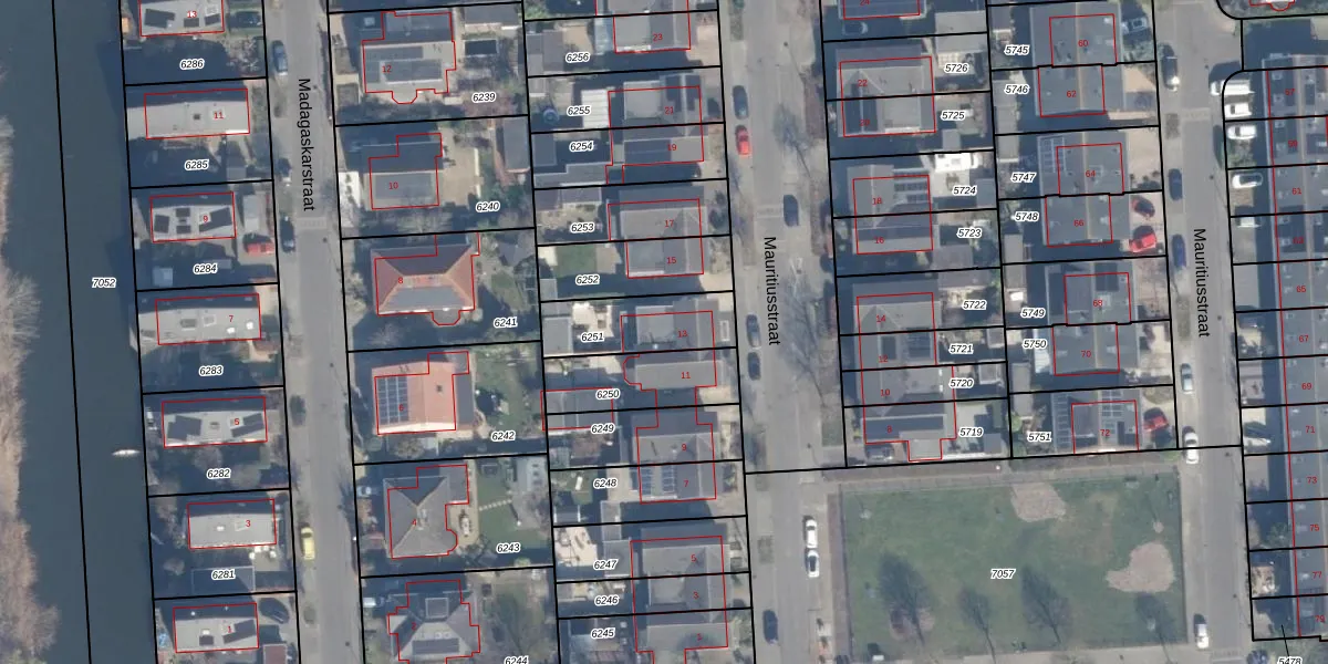 Het perceel waarop Mauritiusstraat 13 staat heeft een oppervlakte van 249 m². Dit is een middelgroot perceel. De perceeloppervlakte wordt geregistreerd door het Kadaster. Gedetailleerde informatie over de maten van dit perceel kunt u vinden in het rapport Kadastrale kaart met maatvoering van Mauritiusstraat 13.