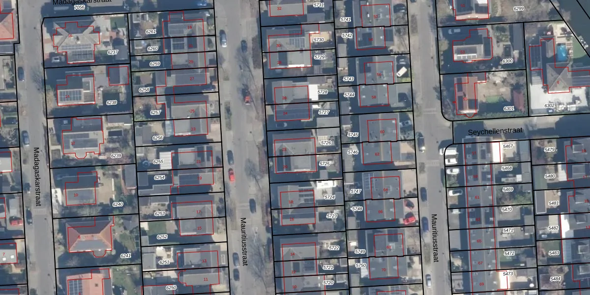 Het perceel waarop Mauritiusstraat 22 staat heeft een oppervlakte van 222 m². Dit is een middelgroot perceel. De perceeloppervlakte wordt geregistreerd door het Kadaster. Gedetailleerde informatie over de maten van dit perceel kunt u vinden in het rapport Kadastrale kaart met maatvoering van Mauritiusstraat 22.