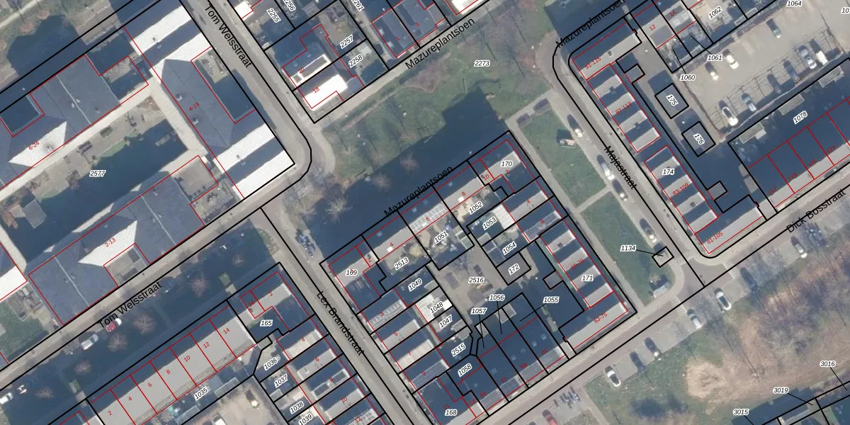 Gebruik de zoekbalk of klik op een perceel voor informatie over de adressen binnen dit perceel.
