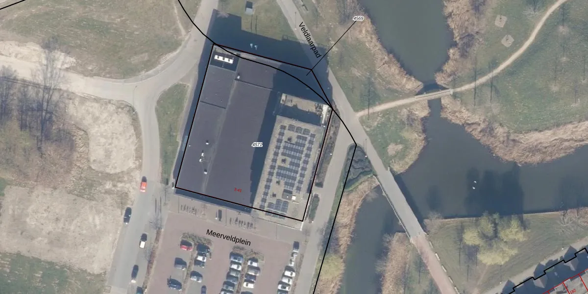 Meerveldplein 29 is gelegen op kadastraal perceel AMR04G4571. Deze kadastrale aanduiding is uniek en wordt gebruikt door het Kadaster om eigendomsrechten en andere zakelijke rechten vast te leggen. Het perceel maakt onderdeel uit van de kadastrale gemeente Almere.