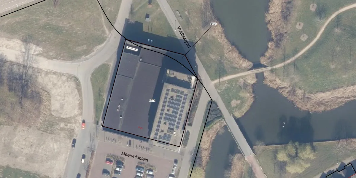Het perceel waarop Meerveldplein 31 staat heeft een oppervlakte van 2096 m². Dit is een zeer groot perceel. De perceeloppervlakte wordt geregistreerd door het Kadaster. Gedetailleerde informatie over de maten van dit perceel kunt u vinden in het rapport Kadastrale kaart met maatvoering van Meerveldplein 31.