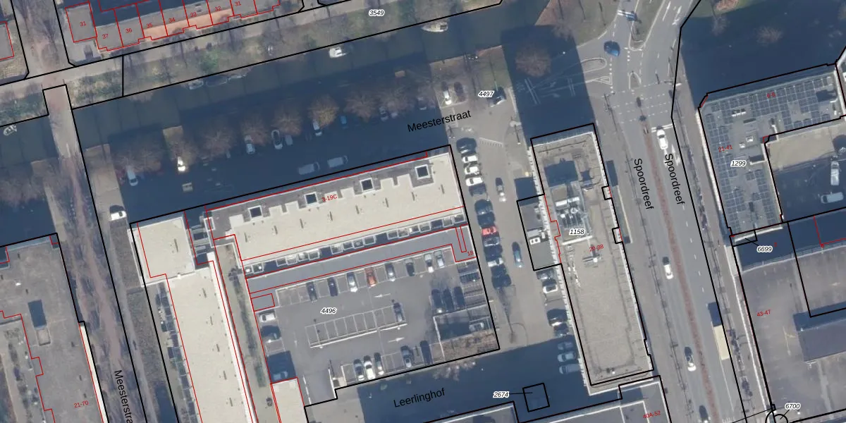 Het perceel waarop Meesterstraat 4-D staat heeft een oppervlakte van 4194 m². Dit is een zeer groot perceel. De perceeloppervlakte wordt geregistreerd door het Kadaster. Gedetailleerde informatie over de maten van dit perceel kunt u vinden in het rapport Kadastrale kaart met maatvoering van Meesterstraat 4-D.