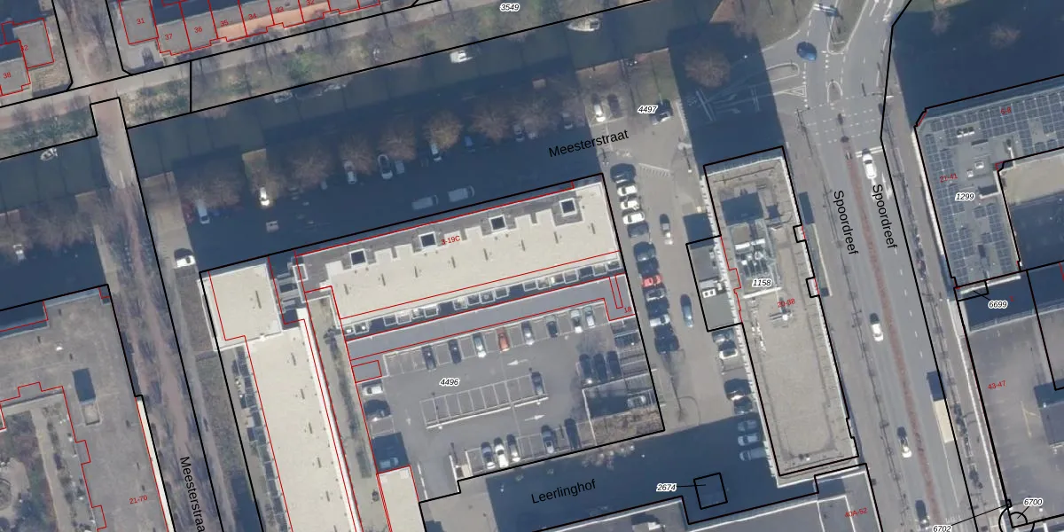 Het perceel waarop Meesterstraat 5-D staat heeft een oppervlakte van 4194 m². Dit is een zeer groot perceel. De perceeloppervlakte wordt geregistreerd door het Kadaster. Gedetailleerde informatie over de maten van dit perceel kunt u vinden in het rapport Kadastrale kaart met maatvoering van Meesterstraat 5-D.