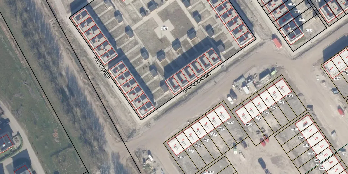 Het perceel waarop Melanie Kleinpad 50 staat heeft een oppervlakte van 5830 m². Dit is een zeer groot perceel. De perceeloppervlakte wordt geregistreerd door het Kadaster. Gedetailleerde informatie over de maten van dit perceel kunt u vinden in het rapport Kadastrale kaart met maatvoering van Melanie Kleinpad 50.